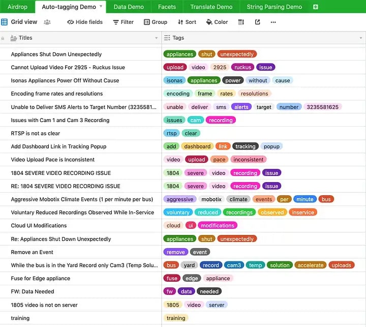 Airtable’s tagging system from community post: https://community.airtable.com/t/polish-your-data-with-auto-tagging/25394